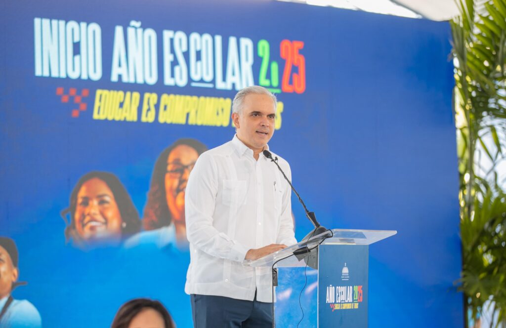 Santo Domingo, RD – El presidente de la República, Luis Abinader, y el ministro de Educación, Luis Miguel De Camps, encabezaron este lunes el acto oficial de apertura del año escolar 2025-2026 en el Centro Educativo en Artes Casandra Damirón, en Santo Domingo Este.