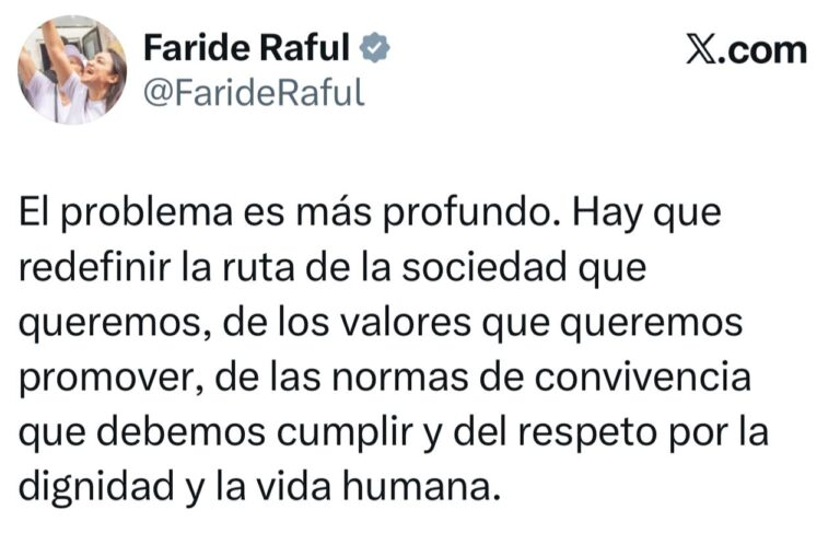 Raful enfatizó la necesidad de replantear el rumbo de la sociedad, promoviendo valores, normas de convivencia y el respeto por la dignidad y la vida humana, como pilares fundamentales para evitar este tipo de hechos.